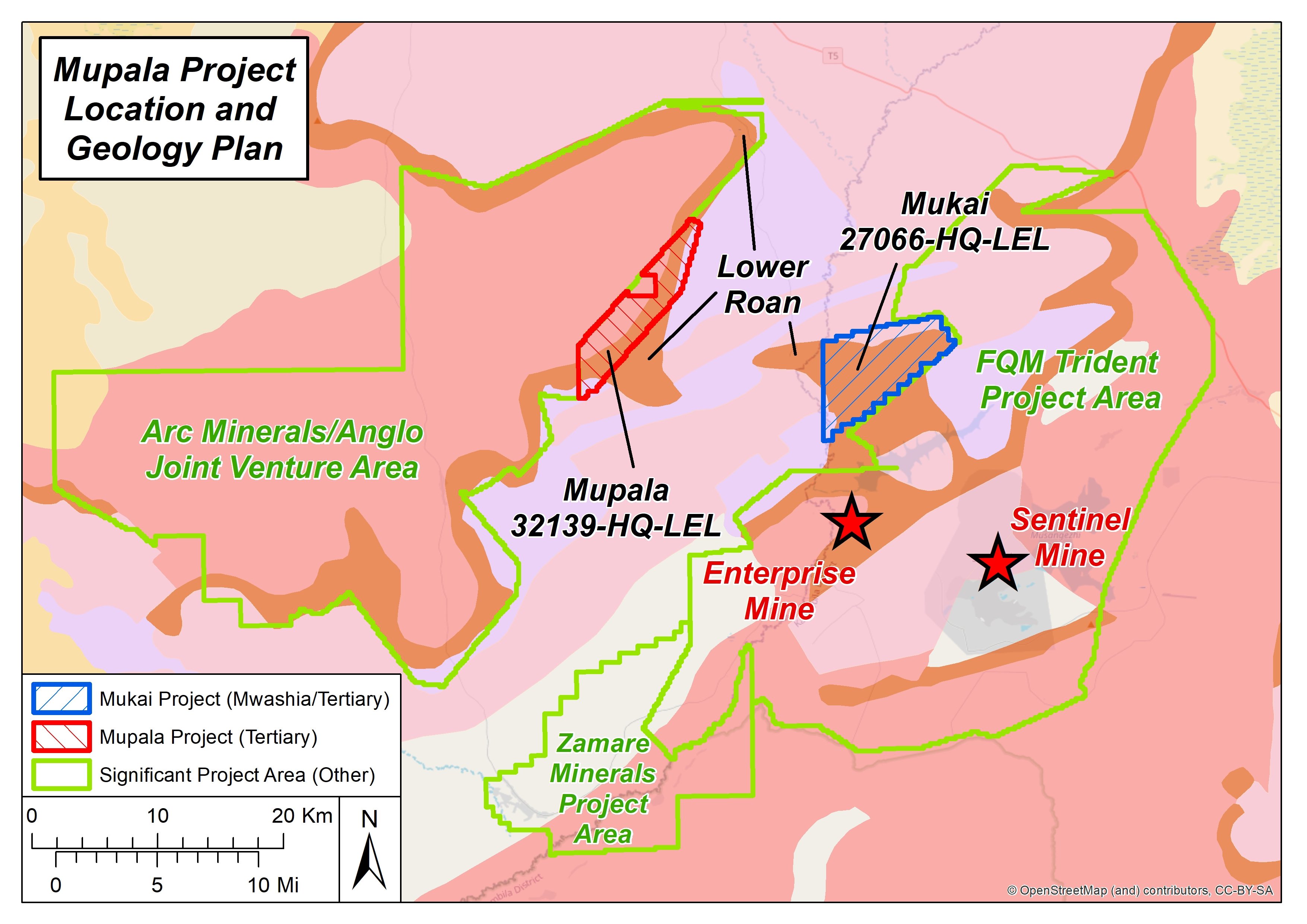 The Mupala Project mineral exploration Licence application 32139-HQ-LEL is located 12 km west of the Company’s Mukai Project and has been approved for grant by the Mining Licensing Committee of the Ministry of Mines and Minerals Development. The licence application: